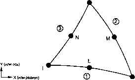 2.10.59. PLANE 146 - двухмерный треугольный р-элемент задач МДТТ Описание элемента PLANE146 является треугольным р-элементом с максимальной степенью интерполяционного многочлена, равной 8. Элемент содержит шесть узлов, имеющих по две степени свободы: перемещения в направлении осей X и Y. Элемент может использоваться для расчетов плоского (плоского напряженного и плоского деформированного) и осесимметричного напряженно-деформированного состояния (НДС). Исходные данные элемента Геометрия элемента, узлы и координатная система показаны на рис. 2.59. Промежуточные узлы элемента не могут быть удалены. В дополнение к узлам элементные входные данные включают толщину элемента (при KEYOPT(3) = 3) и свойства ортотропных материалов. Ортотропные материалы имеют систему координат, параллельную глобальной. Список исходных данных элемента Узлы-I, J, К, L.M.N. Степени свободы - UX, UY. Геометрические характеристики: - при KEYOPT (3) = 0, 1,2-нет; - ТК - толщина при KEYOPT (3) = 3. Свойства материала - EX, EY, EZ, PRXY, PRYZ, PRXZ (или NUXY, NUYZ, NUXZ), ALPX, ALPY, ALPZ (или СТЕХ, CTEY, CTEZ или THSX, THSY, THSZ), DENS, GXY. Нагрузки, приложенные к поверхности: - давление - на ребре 1 (узлы J-I), на ребре 2 (узлы K-J), на ребре 3 (узлы 1-К). К ![]() Рис. 2.59. Геометрия элемента PLANE 146 Объемные нагрузки: - температура - T(I), T(J), Т(К), T(L), Т (М), T(N). Специальные возможности - нет. KEYOPT(l) - признак начальной степени интерполяционного многочлена: - О (и по умолчанию) - используется общая начальная степень интерполяционного многочлена (см. описание команды PPRANGE); - N- начальная степень интерполяционного многочлена (2 < JV< 8). KEYOPT(2) - признак окончательной степени интерполяционного многочлена: - О (и по умолчанию) - используется общая конечная степень интерполяционного многочлена (см. описание команды PPRANGE); - N- конечная степень интерполяционного многочлена (2 < JV< 8). KEYOPT(3) - признак вида НДС: - О - плоское напряженное; - 1 - осесимметричное; - 2 - плоское деформированное; - 3 - плоское напряженное с толщиной (геометрическая характеристика ТК). Расчетные данные элемента Расчетная информация, связанная с элементом, разделена на два вида: - узловые объекты, такие как узловые перемещения, включены в полное узловое решение; - дополнительные элементные объекты, перечисленные в табл. 2.59.
