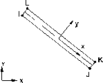 ((счетные данные элемента Выходная расчетная информация, связанная с элементом, разделена на два вида: - узловые объекты, такие как узловые перемещения, включены в полное узловое решение; - дополнительные элементные объекты, перечисленные в табл. 2.86.2. Таблица 2.86.2. Описание расчетных данных элемента SOLID191 Определение NODES VOLU: ТТОР, TBOT ХС,YC,ZC PP.ES TEMP S:X,Y,Z,XY,YZ,XZ EPEL:X,YZ, XY.YZ.XZ EPELEQV EPTH:X,Y,Z,XYYZ,XZ EPTH: EQV THETA AVE THICK ACC AVE THICK AVE TEMP NODE FC1.....FC6, FCMAX VALUE LN EPELF(X, Y, Z, XY, YZ, XZ) SF(X,Y, Z, XY.YZ.XZ) ILSXZ ILSYZ I LANG ILSUM Номер элемента Узлы - I, J, К, L, M, N,QP Объем Усредненные температуры на нижней и верхней гранях Координаты точки, в которой выводятся результаты Давления Р1 в узлах J, I, L, К; Р2 в I, J, N, М; РЗ в J, К, Q N; Р4 в К, L, Р, О; Р5 в L, I, М, P;P6bM,N,QP Температуры T(l), T(J), Т(К), T(L), Т(М), T(N), Т(О), Т(Р) Напряжения (в системе координат слоя) Упругие деформации (в системе координат слоя) Эквивалентные упругие деформации (в системе координат слоя) Температурные деформации (в системе координат слоя) Эквивалентные температурные деформации (в системе координат слоя) Номер слоя Верхняя грань (ТОР), нижняя грань (ВОТ), срединная поверхность (MID) слоя Расположение центра (среднее, AVG). См. описание KEYOPT(5) Номер материала слоя Угол направления для свойств материала слоя (ТНЕТА) Средняя толщина слоя Накопленная средняя толщина (толщина элемента от слоя № 1 до данного слоя) Средняя температура в слое Номер углового узла Номер точки интегрирования Значения критериев разрушения и максимумы в каждой точке интегрирования Номер критерия разрушения (от FC1 до FC6, FCMAX) Максимальное значение данного критерия разрушения (если значение превосходит 9999.999, выводится значение 9999.999) Номер слоя, в котором имеется максимальное значение критерия разрушения Упругие деформации (в системе координат слоя), вызывающие максимальное значение (критерия разрушения) в данном элементе Напряжения (в системе координат слоя), вызывающие максимальное значение (критерия разрушения) в данном элементе Межслойное касательное напряжение SXZ Межслойное касательное напряжение SYZ Угол вектора касательных напряжений (измеряется от направления оси X в сторону оси Y элемента в градусах) Векторная сумма касательных напряжений Таблица 2.86.2. Описание расчетных данных элемента SOLID 191 (продолжение) Объект Определение LN1, LN2 Номер слоев, между которыми вычислено максимально^ межслойное касательное напряжение (ILMAX) ILMAX Максимальное межслойное касательное напряжение -, - 2.10.87. INTER 192- двухмерный (2D) элемент взаимодействия (уплотнения) с четырьмя узлами Описание элемента Элемент INTER192 является двухмерным (2D) линейным элементом взаимодействия с четырьмя узлами, используемым для двухмерного (2D) моделирования сборочных единиц. При связывании с двухмерными (2D) линейными элементами задач МДТТ (PLANE42, HYPER56, VISCO106 и PLANE182) элемент INTER192 используется для моделирования соединений с уплотнениями. Элемент может использоваться или в виде плоского (плоское напряженное или плоское деформированное состояние), или в виде осесимметричного элемента. Элемент определяется четырьмя узлами, имеющими две степени свободы в каждом узле: перемещениями в направлении осей X и Y узловой системы координат. Исходные данные элемента Геометрия элемента, расположение узлов, связность и узловые системы координат показаны на рис. 2.87. Геометрия элемента определена четырьмя узлами, которые формируют нижнюю и верхнюю линии