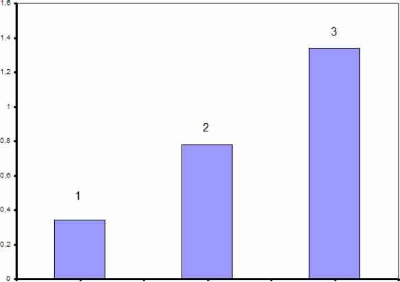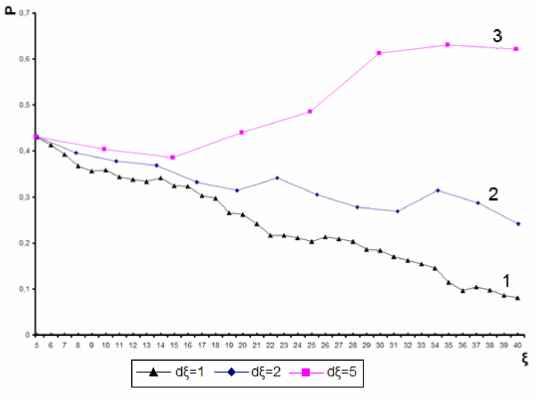 При условии перехода точки из одного класса в другой по правилу (4), необходимо пересчитать средние показатели этих классов. Для этого следует применять рекуррентные формулы. n (n -1) n -1 n (n -1) 1=1 где Qt - класс к которому перешла точка xn, Q j - класс который покинула точка xn. Результатом применения модифицированного алгоритма автоматической классификации цветного изображения служит набор выборок V1, j = 1, т , характеризующих отдельные объекты на изображении. 5. Исследование показателя эффективности алгоритма автоматической классификации цветных изображений Для исследования эффективности предложенного метода автоматической классификации цветных изображений, алгоритм был протестирован на наборе данных, состоящем из 20 изображений одинакового размера (500х300), полученных при разных условиях освещенности окружающей среды. Каждое изображение первоначально подвергалось обработке с помощью эксперта, с целью получения указаний учителя (выполнялось выявления объектов и уточнения их размеров). Далее изображение поступало на вход алгоритма при разных уровнях dZ g [1,3,5]. Первоначальное значение коэффициента размытости изображения Z было зафиксировано на уровне 5, а максимальное Z взято равным 40. Далее результаты, полученные с помощью эксперта а и алгоритма а , сравнивались. Показатель эффективности определялся как оценка вероятности ошибки автоматической классификации объектов на цветном изображении (5). Р--£ 1(а'а ), (5) 1(а' а ) - где а1 - указания учителя, а - результаты, полученные с помощью работы алгоритма. [1, а1 0, а1 - Полученные показатели эффективности алгоритма автоматической классификации цветных изображений р , усреднялись в пределах одного коэффициента размытости изображения Z и заданного шага dZ (6). р1- N £ р, n - 20, j -1,3 (6) Результаты исследования показателя эффективности алгоритма автоматической классификации цветных изображений приведены на рисунке 1. ![]() Рис. 1. Зависимость показателя эффективности алгоритма Pj, j = 1,3 от значения коэффициента размытости изображения Z . График №1 показан для значения шага dZ = 1, второй для dZ = 2 и третий график для dZ = 5 Предлагаемый метод автоматической классификации цветных изображений исследовался на скорость обработки поступающего набора данных. Оценка показателя скорости алгоритма определялась как время, затрачиваемое ЭВМ на проведение автоматической классификации цветного изображения. Оценка скорости алгоритма проводилась для каждого изображения и заданного шага dZ, а полученные значения усреднялись. Результаты исследования показателя скорости алгоритма автоматической классификации цветных изображений приведены на рисунке 2. Тестирование проводилось на ЭВМ с тактовой частотой процессора 2Ghz. ![]() tH=E- Рис. 2. Зависимость времени выполнения алгоритма автоматической классификации цветных изображений от шага dZ . Столбец № 1 получен для значения шага dZ = 1, столбец №2 для dZ = 2 и столбец №3 для dZ = 5 Исследование алгоритма автоматической классификации цветных изображений показало: 1. Наилучшие результаты, в смысле минимума ошибки классификации, получаются для dZ = 1 . Но скорость алгоритма автоматической классификации при таком шаге достаточно мала. 2. Для достижения приемлемого качества и скорости алгоритма следует комбинировать шаг dZ . Эффективно выбирать значение dZ равное 3, пока коэффициент размытости изоб