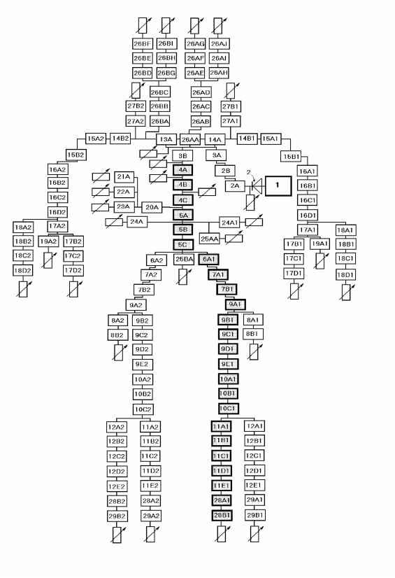 Результаты исследования Параметры объемного кровотока Сердце в организме человека средней массы в состоянии покоя перегоняет приблизительно 5 л крови в минуту. Измерения регионарного кровотока в покое показали, что головной мозг получает 14%, сердце 3,5 -5%, желудочно-кишечный тракт 23%, почки 22%, мышцы 18%, кожа 4%, остальное (кости, жировая ткань, соединительная ткань и т.п.) - 14% от общего минутного объема [9]. Исходя из потребностей каждого региона в количестве кровотока рассчитывалась объемная скорость потока крови на отдельных участках модели артериального древа человека. Учитывая вклад таких регионов, как сердце и головной мозг, верхние конечности объемную скорость кровотока в сегменте 4 А рассчитали по следующей формуле: 5 л - 0,8 л (голова, головной мозг 14% + кости головы, соединительная ткань и т. п.) - 0,18 л (коронарный кровоток) - 1 л (верхние конечности) = 3,02 л. После распределения кровотока в артерии желудочно-кишечного тракта скорость в сегменте 5А составила 1,77 л/мин. С учетом почечного кровотока объемная скорость в сегменте 5В равна 0,52 л/мин. Arteria mesenterica inf. (сегмент 25ВА) забирает 0,12 л/мин. Таким образом, после бифуркации аорты скорость в подвздошных артериях составила 0,2 л/мин (участок 6А - 9А). После ответвления arteria profundus (сегменты 8А, 8В) от arteria femoralis скорость кровотока составила 0,1 л/мин (сегменты 9В - 10С). После разветвления arteria poplitea (10С) на arteria tibialis posterior (11А - 11Е) и arteria tibialis anterior (12А - 12Е) кровоток в arteria tibialis posterior (11А - 11Е) составил 0,073 л/мин. Давление Согласно закону Пуазейля формула для объемной скорости кровотока имеет вид [9]: П * r 4 * (P 1 - P 2) Q--87 Уравнение Пуазейля можно также упростить по прямой аналогии с первым законом Ома о соотношении между электрическим током, напряжением и сопротивлением [9]. Q ( P 1 - P 2) Q ~ R Где 8 l П Г Отсюда возможно рассчитать градиент падения давления на каждом участке артериального древа человека. A P = Q * R В обоих кругах кровообращения градиент падения давления Ра-Ру (Ра соответствует среднему аортальному давлению (90-110 мм рт. ст.) в большом круге, а Ру - центральному венозному давлению (практически равному нулю) поддерживается на довольно постоянном уровне [9]. Известный профиль падения давления в кровеносной системе [9] отражает изменение давления вдоль наиболее крупных сосудистых секций (артерии - артериолы, капилляры, венулы - вены). Используемая модель позволила рассчитать градиент падения давления на каждом сегменте модели. Эндотелийзависимая поток-индуцируемая регуляция и градиент давления Изученные регионарные особенности эндотелий-зависимых поток-индуцируемых реакций артерий кроликов в широком диапазоне объемной скорости потока выявили [8], что максимальная вазодилатация составила 12,2±0,84% в сонной артерии, 21,04+1,67% - в брюшной аорте, 19,8±3,81% - в чревном стволе, 23+3,8% - в подвздошной артерии, 21,94+4,15% - в почечной артерии, 109,24+16,34% - в бедренной артерии. Известно, что прирост диаметра более мелких, чем бедренная артерия, сосудов (например, артерия стройной мышцы) также доходит до 100% [7]. Даже в тех случаях, когда минутный объем, равный в покое 5 л/мин, увеличивается во время тяжелой нагрузки до 25 л/мин, градиент давления на участке 4А - 5С, рассчитанный с помощью модели, составил бы 2,03 мм рт. ст. по сравнению с 0,41 мм рт. ст. в покое. Реально, благодаря имеющей место поток-зависимой вазодилатации, АР на этом участке составил 1,43 мм рт. ст. (таблиц